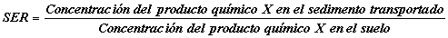 El coeficiente de enriquecimiento de los sedimentos (SER) se define así: