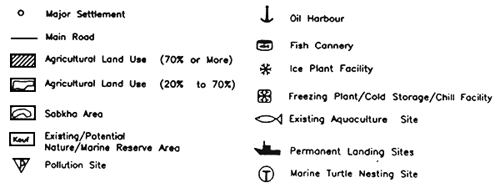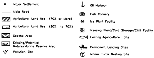 ![]() | MAP 3. COASTAL ZONES: GULF Scale (Approx): 1: 1,400,000 [Sources:Project UNCHS LIB/91/X01 and LIBFISH Field Missions. Locations approximate, see site lists for geo-coordinates.] |