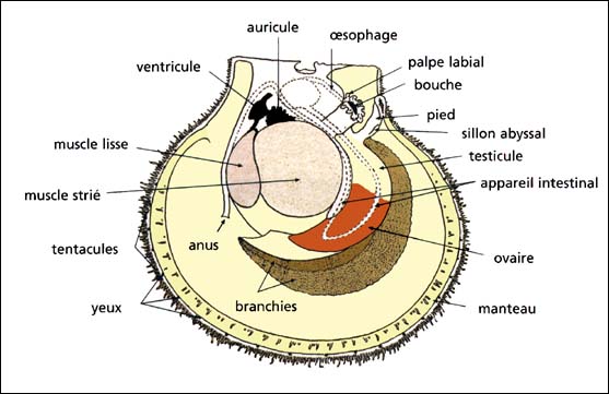 Figure 9: Anatomie de la partie interne du corps mou d'un pectinidé hermaphrodite.