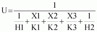 Para un recipiente termoaislado constituido por varias capas de materiales diferentes, el coeficiente de transmisión de calor se puede calcular mediante la siguiente ecuación:
