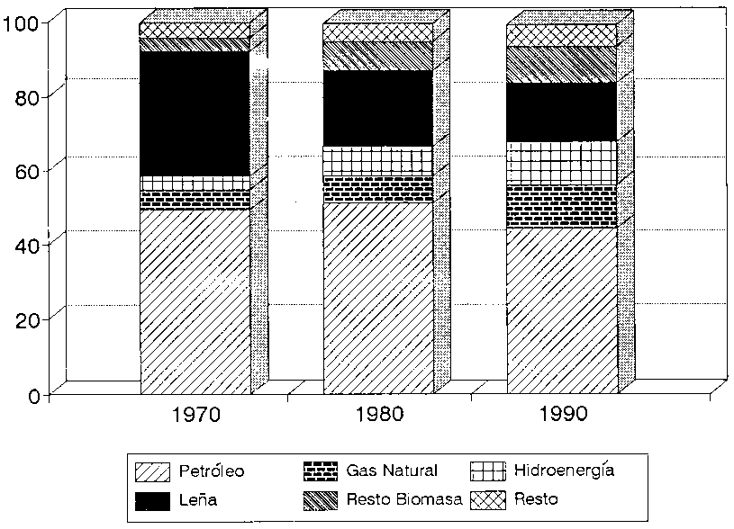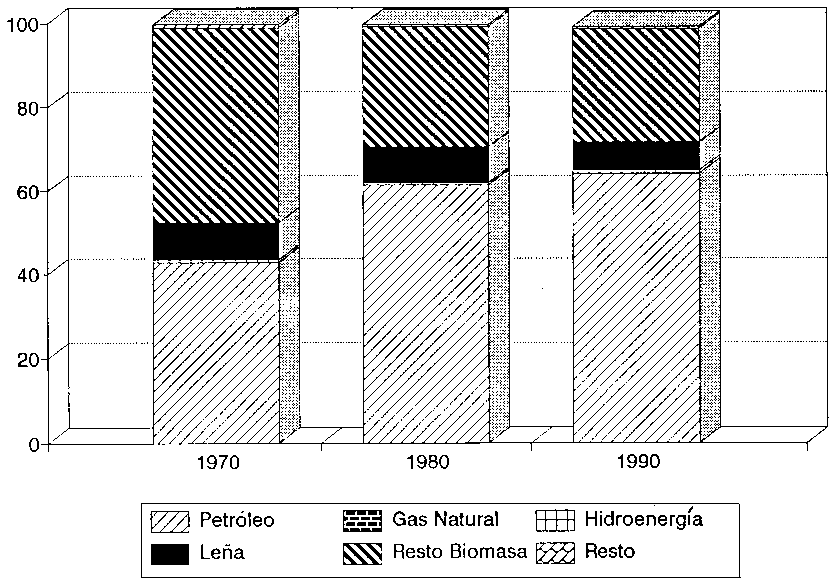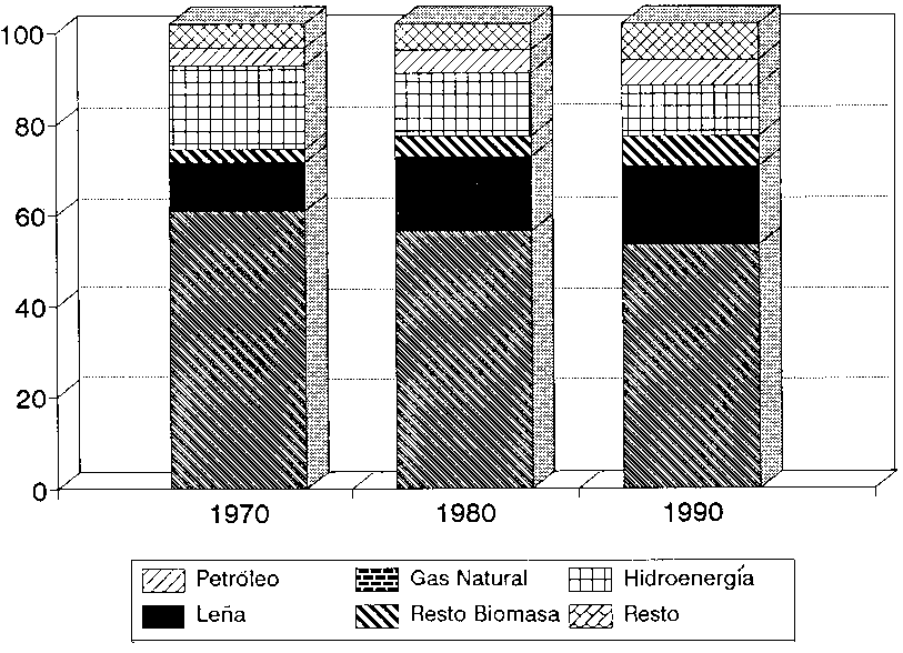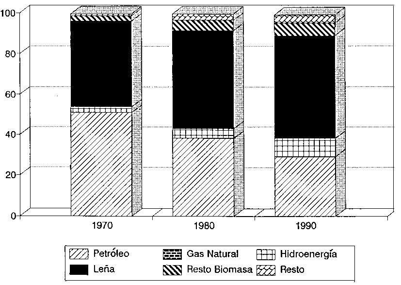 A nivel de los PE, entre los años 1970 y 1990 la participación relativa de la LEÑA en la OTEP sólo aumentó en los casos de Bolivia, Guatemala, Honduras, Panamá y Uruguay, disminuyendo en el resto. No obstante ello, la contribución de la LEÑA en la OTEP continúa siendo altamente significativa con excepción de Argentina, Cuba y México, aunque por diferentes razones. En el caso de Argentina, por la escasa o nula importancia asignada en esta fuente, incluso en los registros energéticos, mientras que en Cuba es debida a la escasez del recurso y en México aparece como una combinación de ambas. En estos dos últimos países se observan significativos esfuerzos que tienden a la superación de lo señalado.