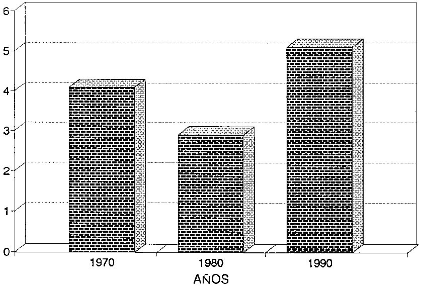 La tasa de crecimiento del CFH entre 1970 y 1990 (por ciento promedio anual acumulativa), por región, fue la siguiente: