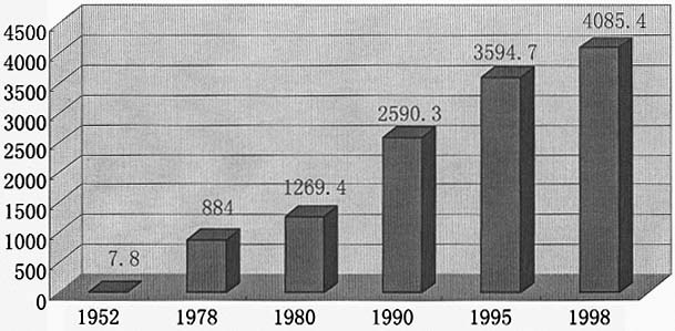FIGURE 1: Increase of grain production, 1949-2000