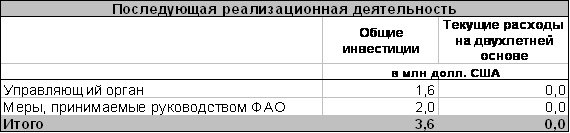 52) В 2009 году для обеспечения начальной реализации, включая управленческие меры по реализации последующей деятельности, потребуется финансирование за счет добровольных внебюджетных взносов и создание соответствующего целевого фонда. Такое финансирование должно также позволить реализацию срочных мер по итогам досконального обзора и обеспечить целостность осуществления Программы работы и бюджета на 2008-2009 годы. Начиная с 2010-2011 годов, финансирование реализации Срочного плана действий будет рассматриваться в рамках Программы работы и бюджета. Ниже представлены предварительные сметные данные на 2009 год на общую сумму в 21,8 млн. долл. США.
