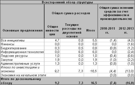 в разделе III представлены расходы и экономия средств в связи с реализацией основных инициатив, предусмотренных на этапе 1 выполнения рекомендаций авторов досконального обзора;