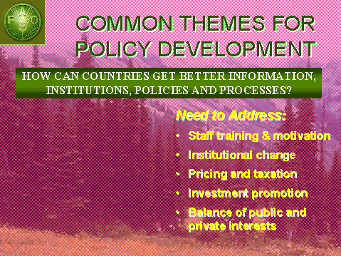 In addition to this, FAO also compiles quite a wide range of other miscellaneous forestry information about biological and technical parameters, policy and institutional developments and social, economic and environmental factors related to the forestry sector, which complements and helps with the interpretation and analysis of the above information.