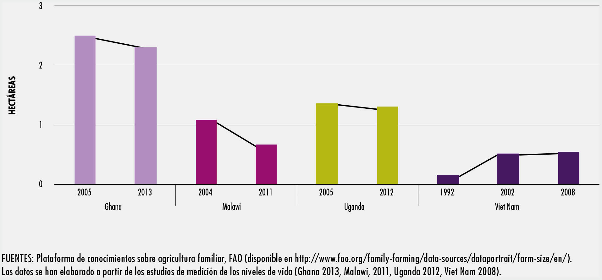 3.7 Evolución del tamaño promedio de las explotaciones agrícolas, en hectáreas