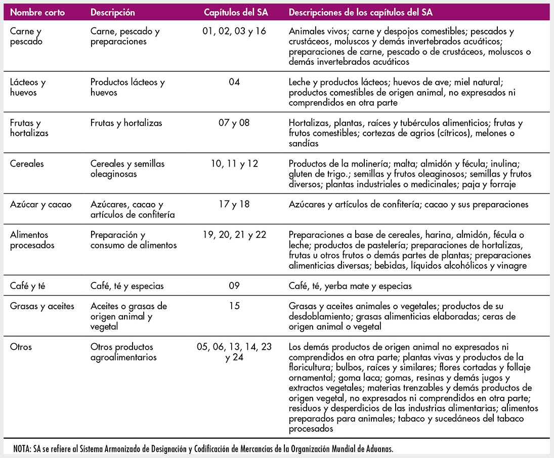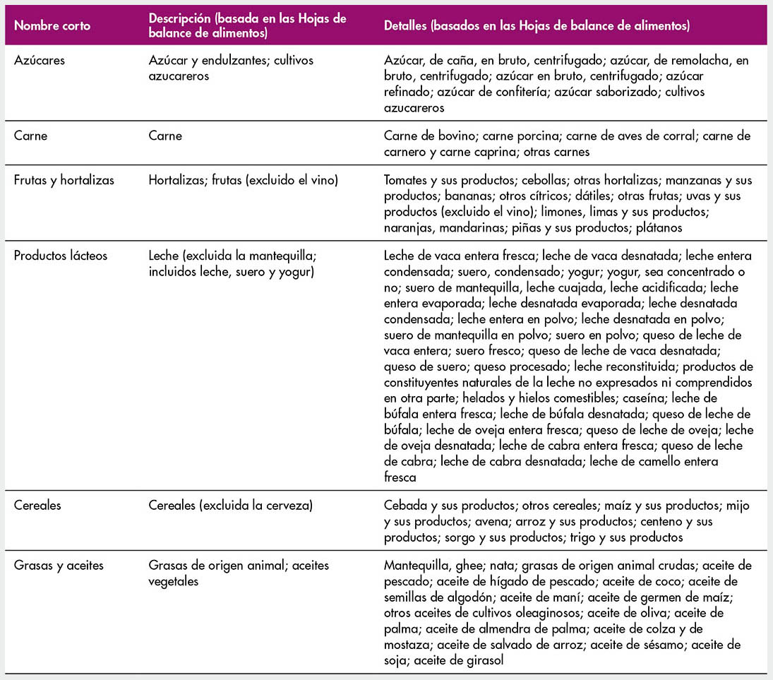 A.1 Definición de “alimentos” que se utiliza en la Parte 1, comercio por grupo de alimentos