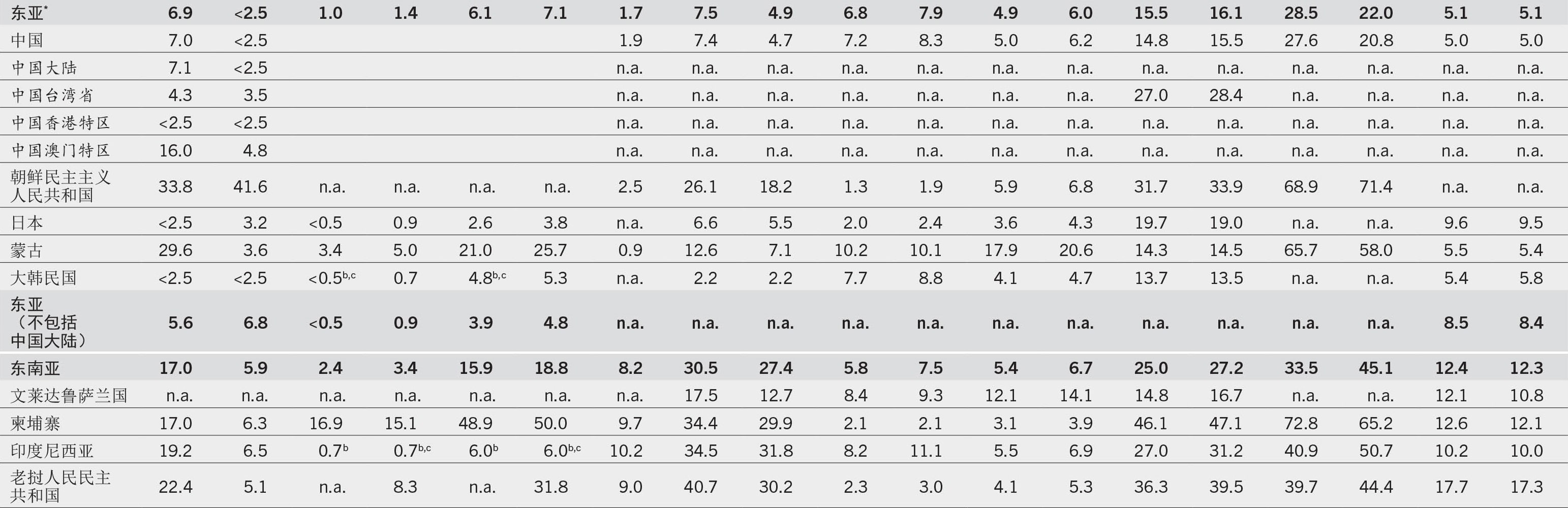 * 五岁以下儿童消瘦和低出生体重的区域合计数不包括日本。