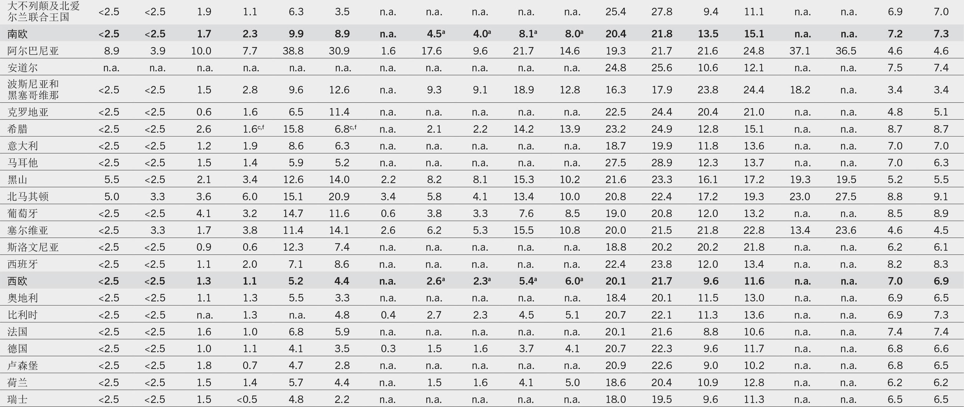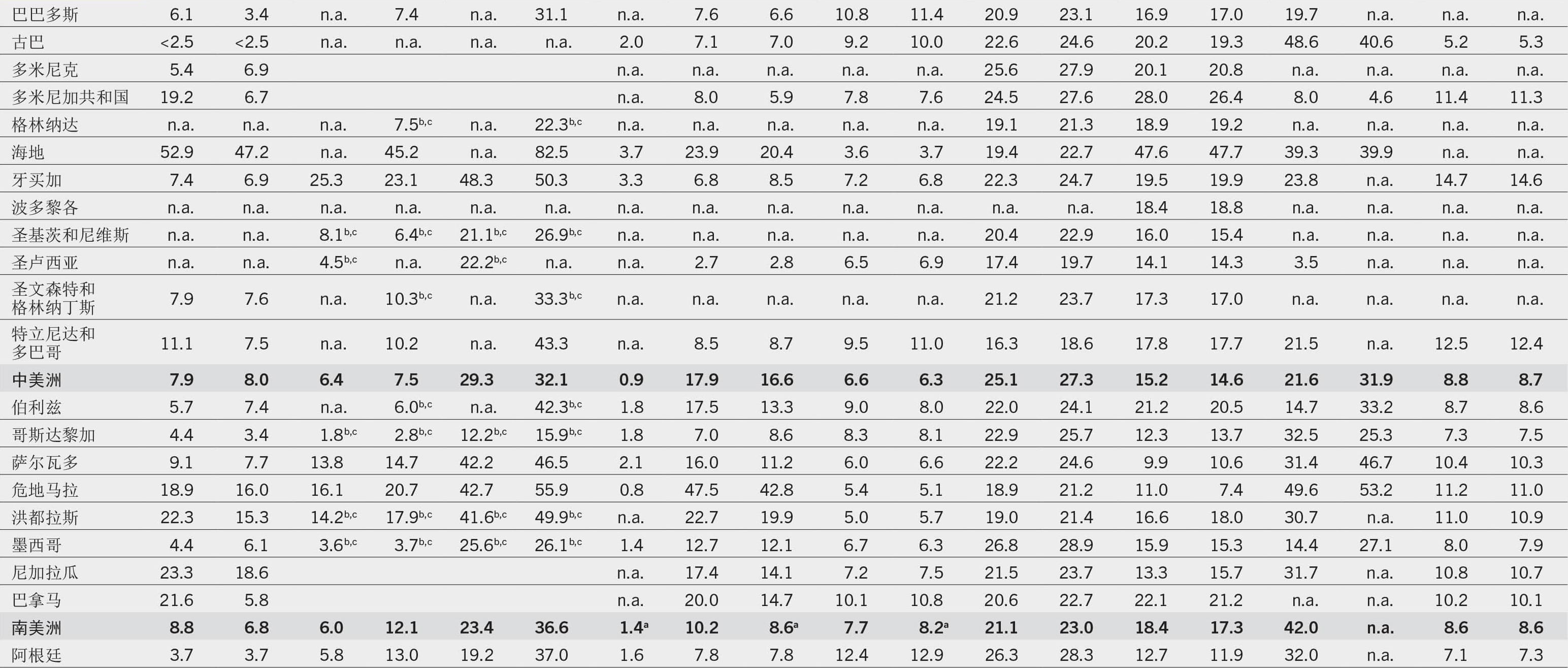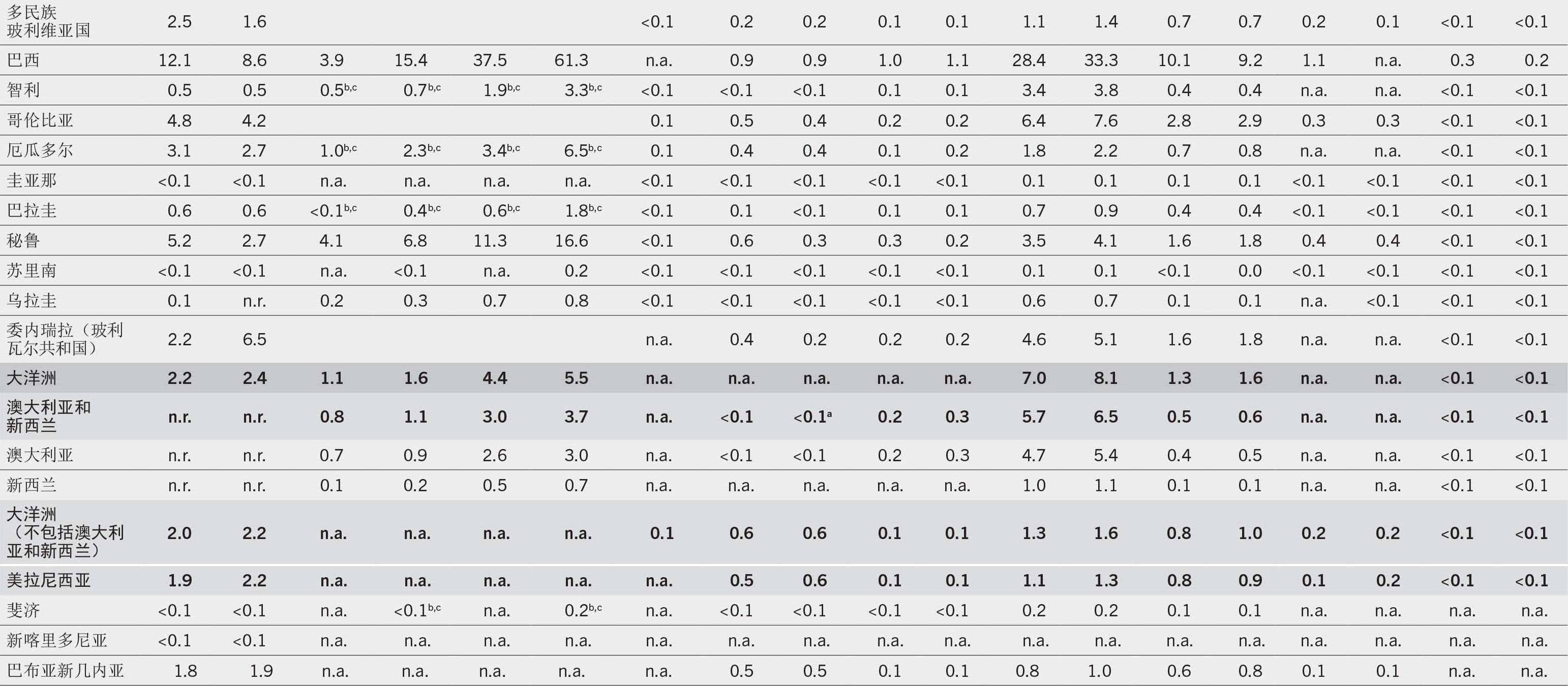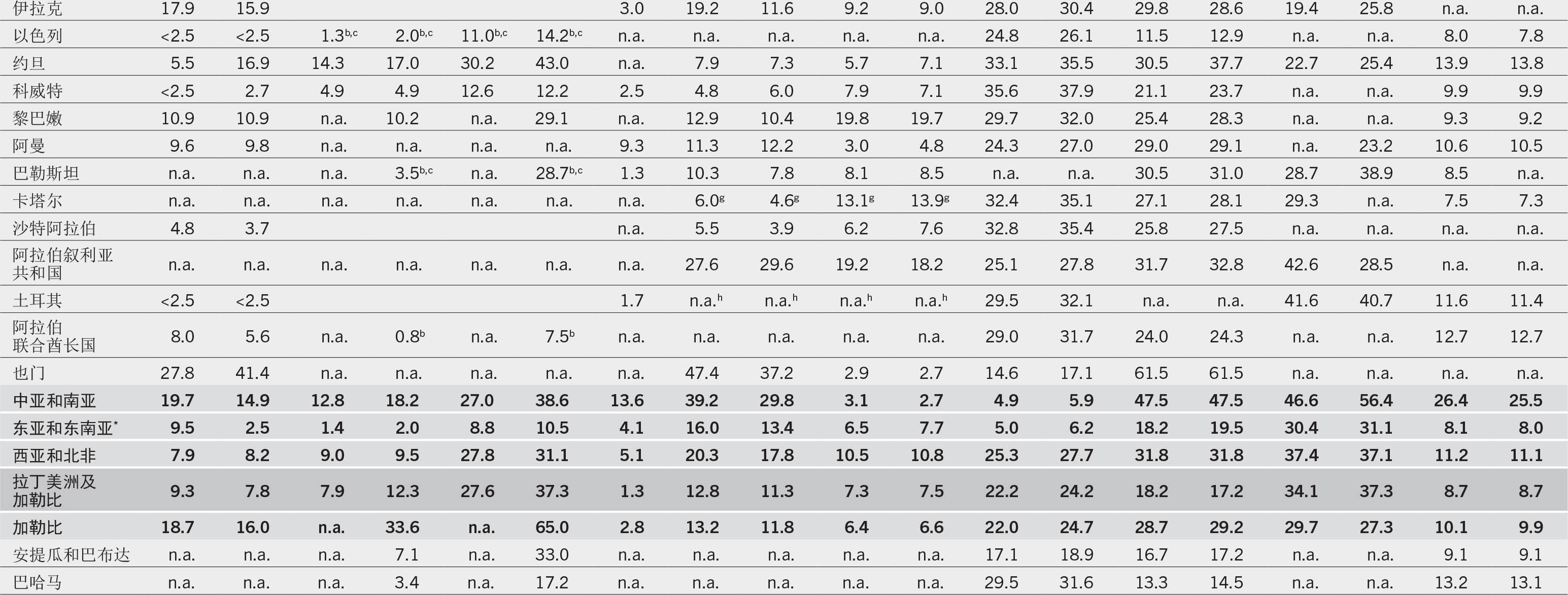 8. 如人口覆盖率超过50%,则提供区域估计值。国家估计值采用2014-2020年间最新数据,但中国除外,其最新数据为2013年的数据。