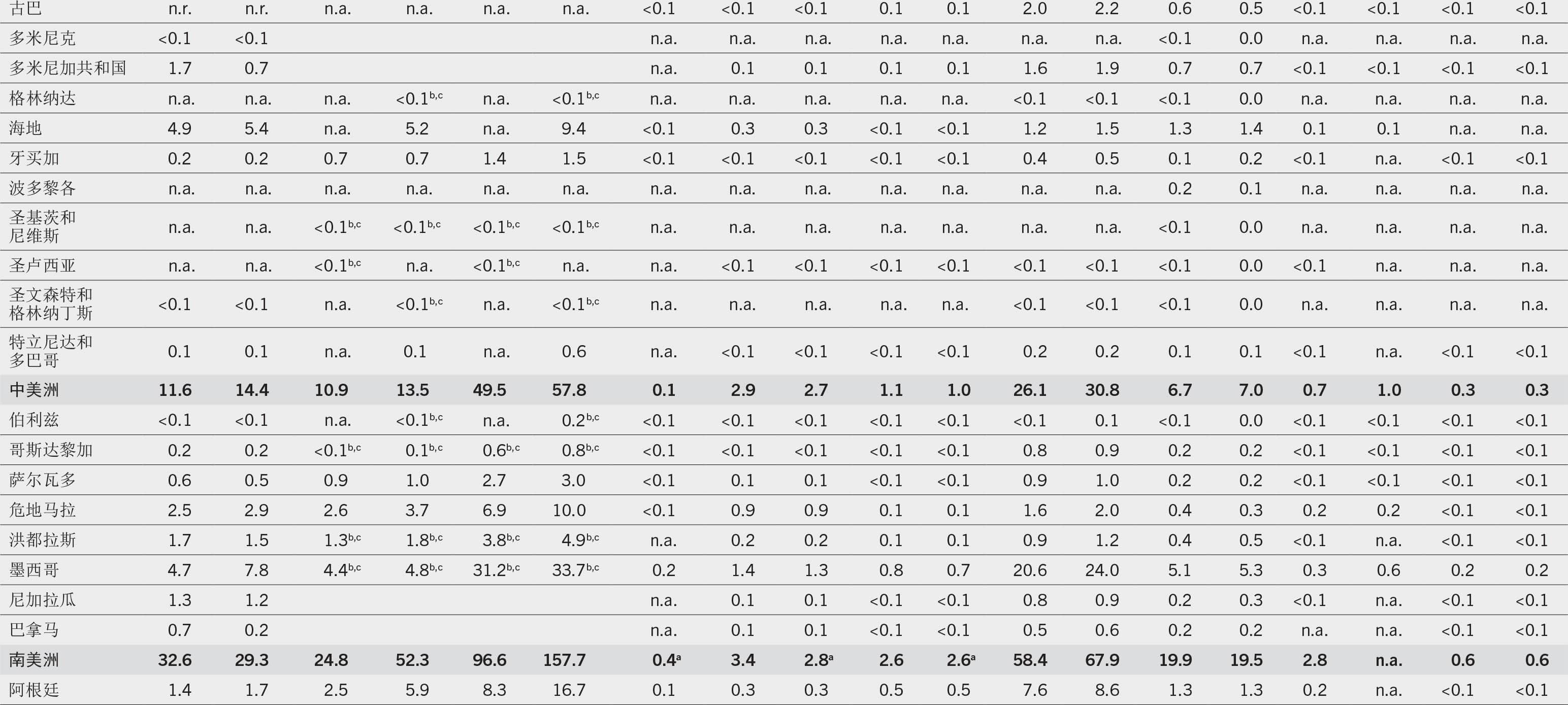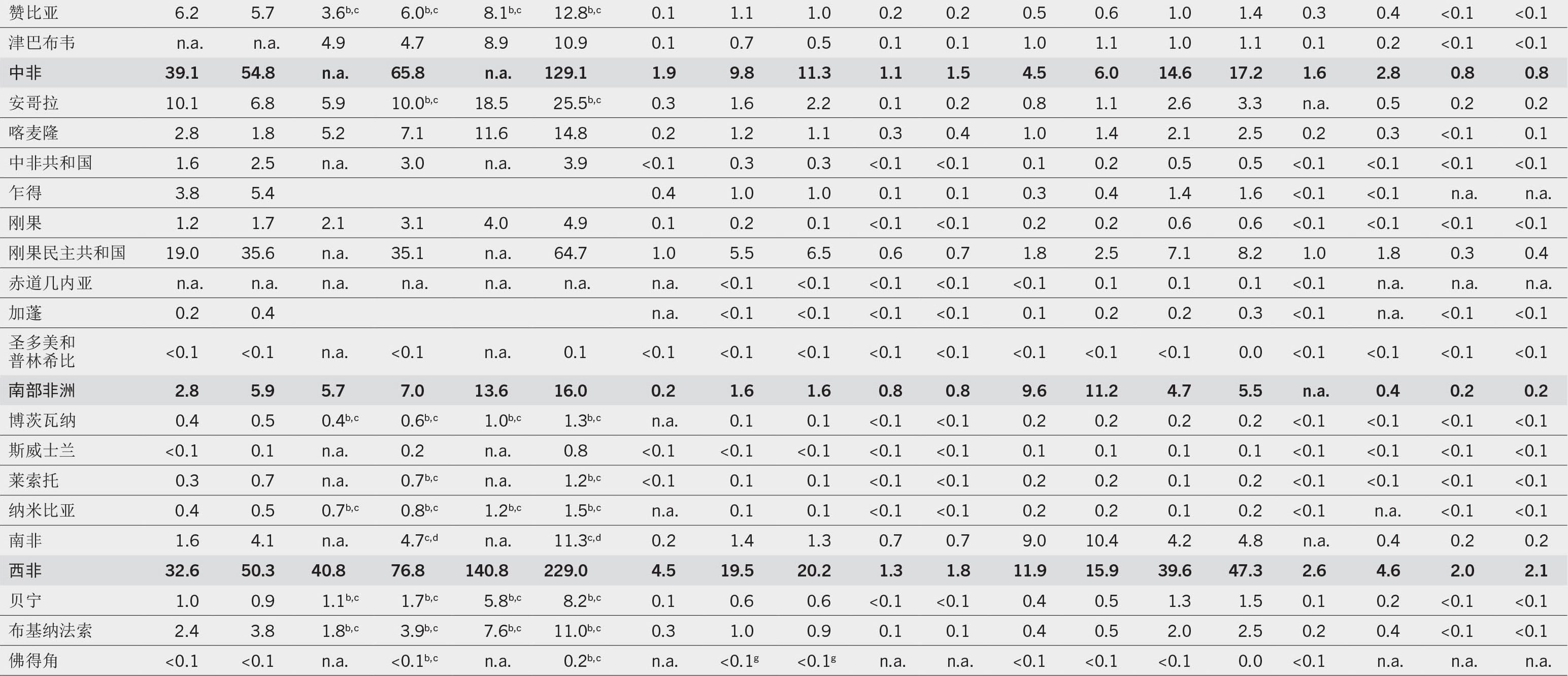 5. 区域估计值为2020年的模型预测值。国家估计值采用2014-2020年间最新数据。