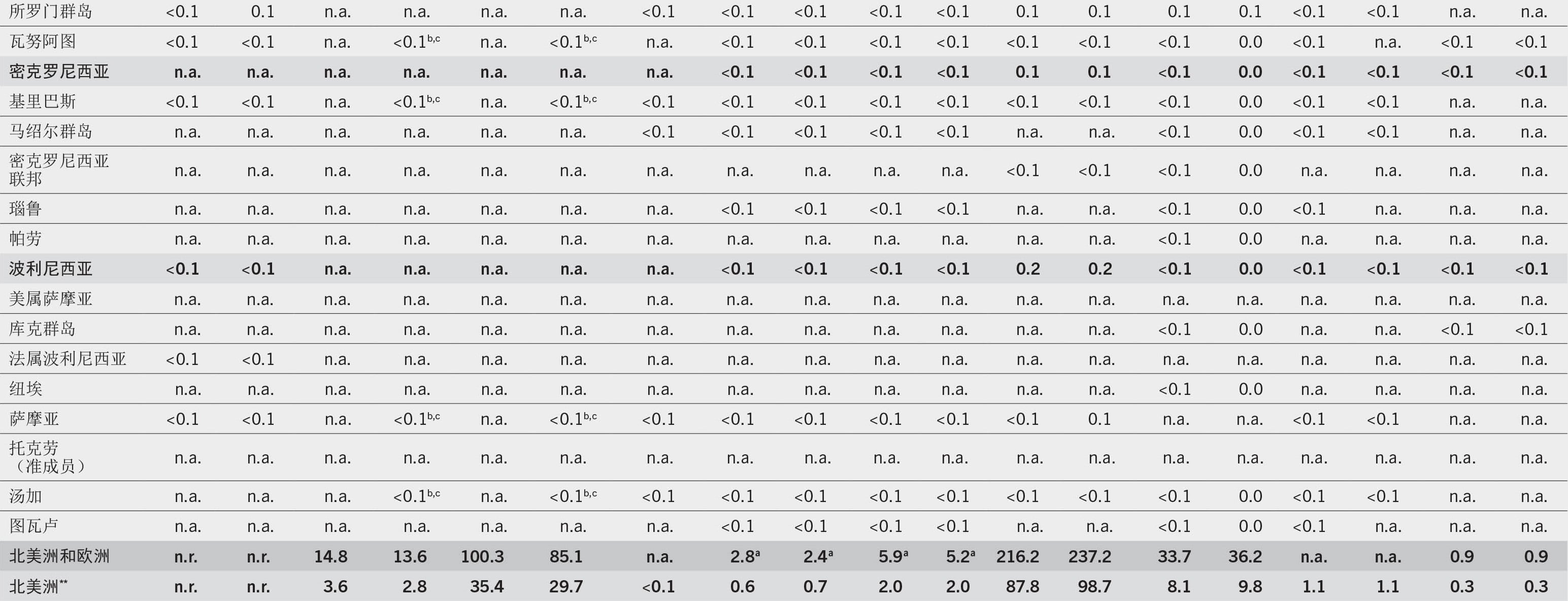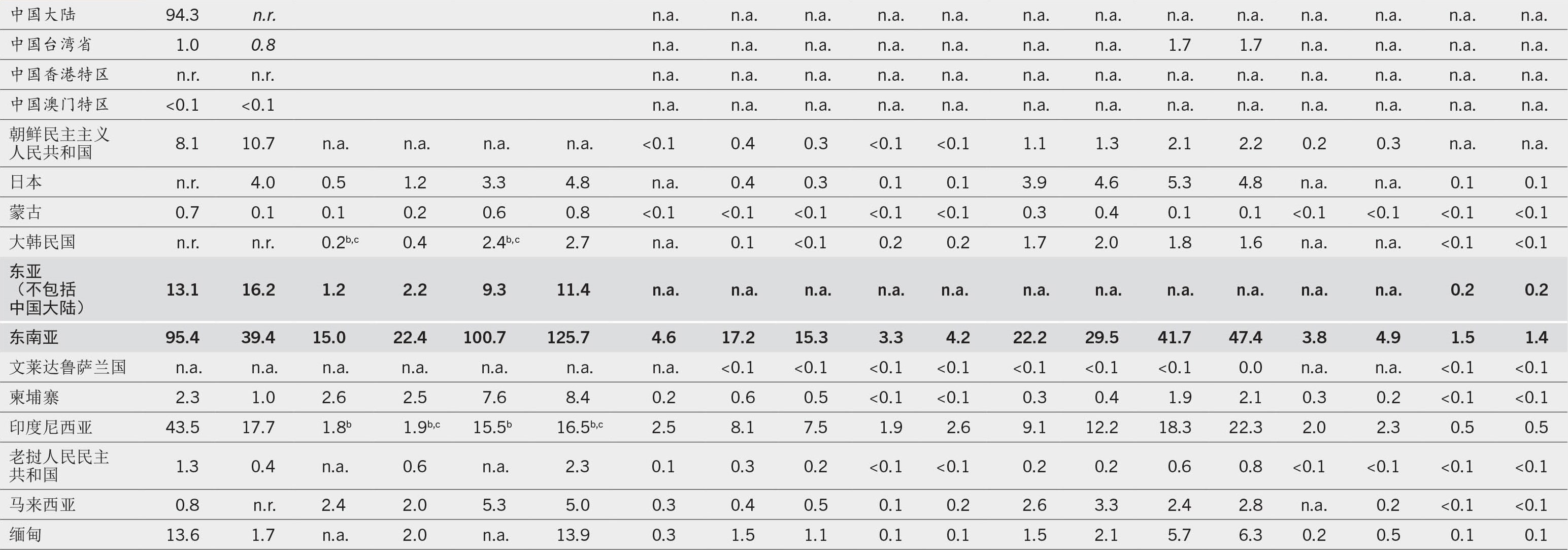 c. 对于没有国家官方数据的年份,使用粮农组织的数据或估计值预测。详见附件1B。