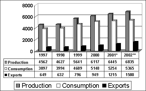 USDA, World Market & Trade - Dairy, Livestock and Poultry Division; 2001.