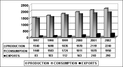 Agro industry concentration also increased form the 80s to the 90s, as it will be shown in this report. The industrialized meat sector is very concentrated as a matter of fact: the 3 largest industries comprise 55% of total production. The dairy industry is concentrated as well: the 5 largest firms are responsible for 50% of the sectors production.