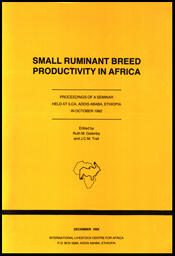 This report on small ruminant breed productivity in Africa is based on a seminar held at ILCA, Addis Ababa, Ethiopia in October 1982. Basic considerations of breeding plans and production objectives are discussed. Current research approaches in Africa, India and Australia are outlined and methods of collection and analysis of production data are described. Some results of research on the productivity of small ruminants in Africa are reported.