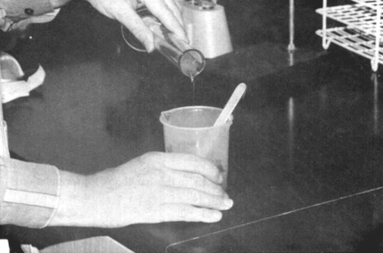 (c) Mix (stir) the contents thoroughly with a stirring device (tongue blade, fork).