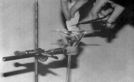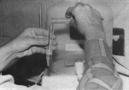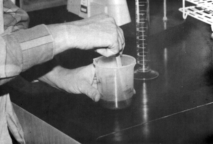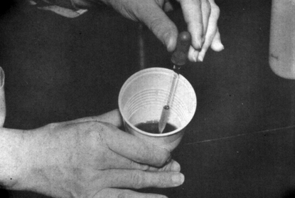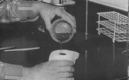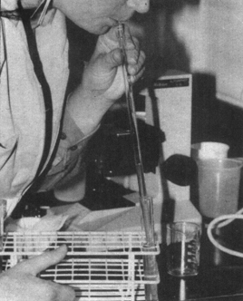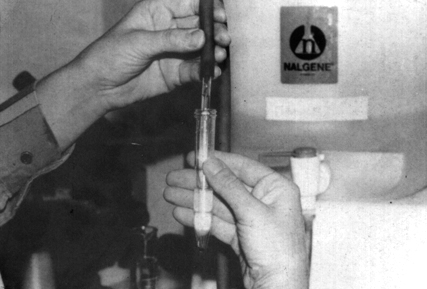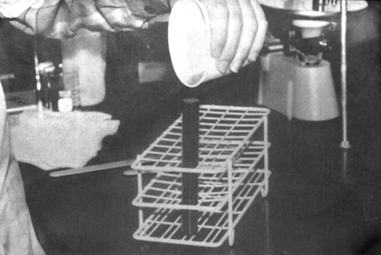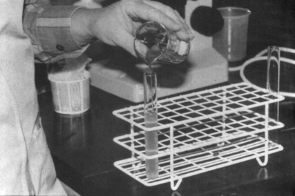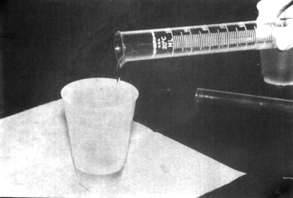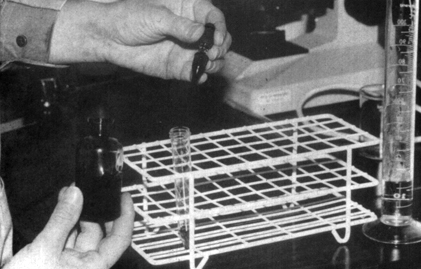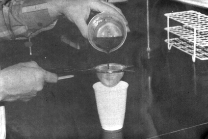 (m) Draw 10-15 ml of fluid from the stem of the funnel into a test tube or other container.(n) Leave the tube to stand for 30 minutes. Remove the supernatant with a Pasteur pipette.