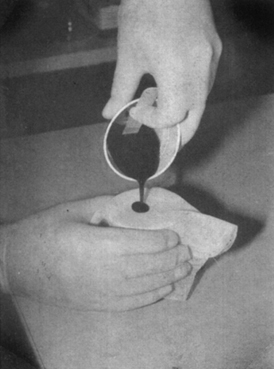 (j) Draw a few ml of fluid from the stem of the funnel into a small petri dish.