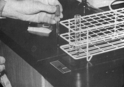 (i) Carefully lift off the coverslip from the tube, together with the drop of fluid adhering to it, and immediately place the coverslip on a microscope slide.