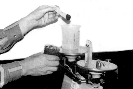 (a) Weigh or measure approximately 3 g of faeces into Container 1.