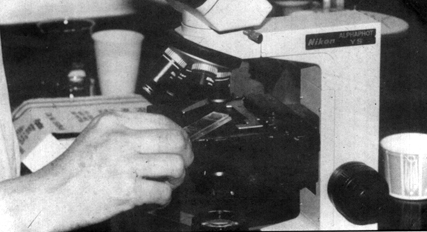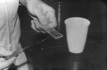 (h) Mount the coverslip on the microslide for microscopical examination.
