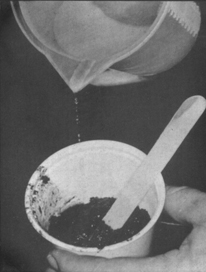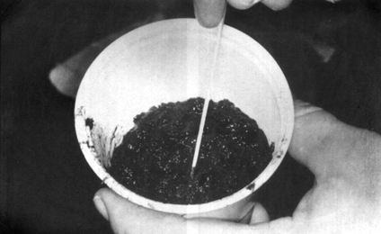(c) Mix (stir) faeces and flotation fluid thoroughly with a stirring device (tongue blade, fork).
