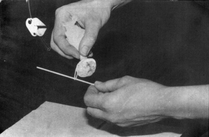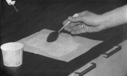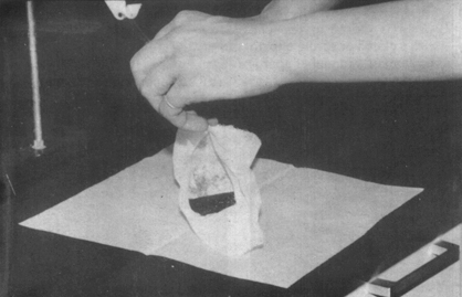 (d) Form the cheesecloth around the faeces as a "pouch".