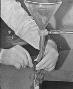 (h) Fill the funnel with lukewarm water, covering the faecal material.