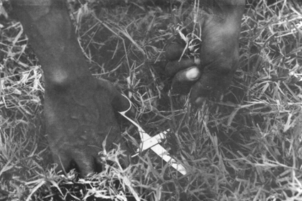 (b) Grass can be collected by hand. Where grasses are coarse, scissors may