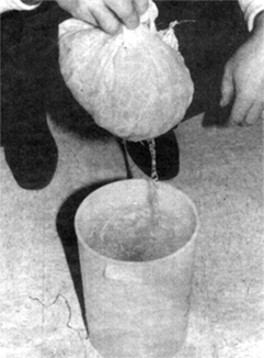 (c) Place the collected grass sample inside a gauze bag and immerse the bag in water in a bucket but keep the bag clear of the bottom of the bucket.