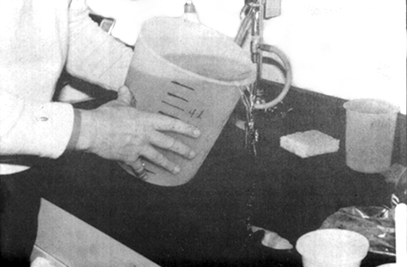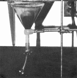 · Large plastic or glass filter funnel (20 cm diameter), fitted with a length of flexible, transparent tubing carrying 2 screw clamps arranged so that about 15 ml can be trapped between the two clamps