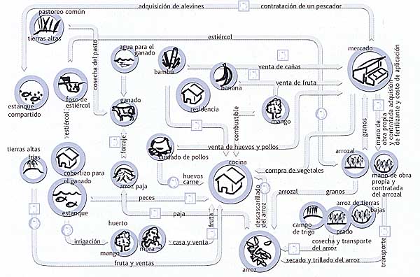 FUENTE: Adaptación de un dibujo hecho por un granjero en Lightfoot, C. et al. 1991 Households, agroecosystems, and rural resources management Bangladesh Agricultural Research Institute and ICLARM, Manila, Philippines, 80 pp.