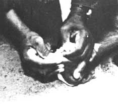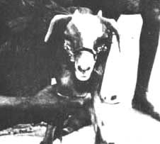 The first step involves the use of soft animal faeces. A layer of faeces is placed on the dam's teats (Figure 1) and the smell normally prevents the kid or the lamb from suckling. This is done at least twice a day for a period of 3 d or more depending on the persistence of the young. If the young ignores the smell and continues, the faeces of a kid or lamb still suckling colostrum is used, the reason being that this kind of faeces has a more repulsive smell. If this practice fails to induce weaning, the next one involves the use of a small piece of cloth which is tied around the teats of the mammary glands to create a mechanical barrier between the mouth of the young and the teats. This method does not always prevent suckling, kids being more persistent than lambs.