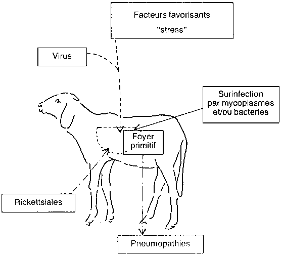Figure 1. Etiopathogénie des "pneumopathies" des petits ruminants.