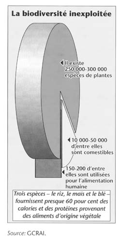 Pour alimenter une population mondiale croissante, il faudra faire appel à toutes les ressources génétiques disponibles, y compris les espèces sauvages apparentées aux plantes cultivées. Les techniques modernes d'amélioration des plantes ainsi que les nouvelles biotechnologies offrent la possibilité d'exploiter des espèces végétales peu connues comme sources de nourriture, et de valoriser les qualités des plantes qui sont sous-utilisées-spécialement des plantes traditionnelles revêtant une valeur spéciale pour des populations pauvres, telles que des céréales, légumineuses, graines oléagineuses, fruits et légumes traditionnels et locaux.