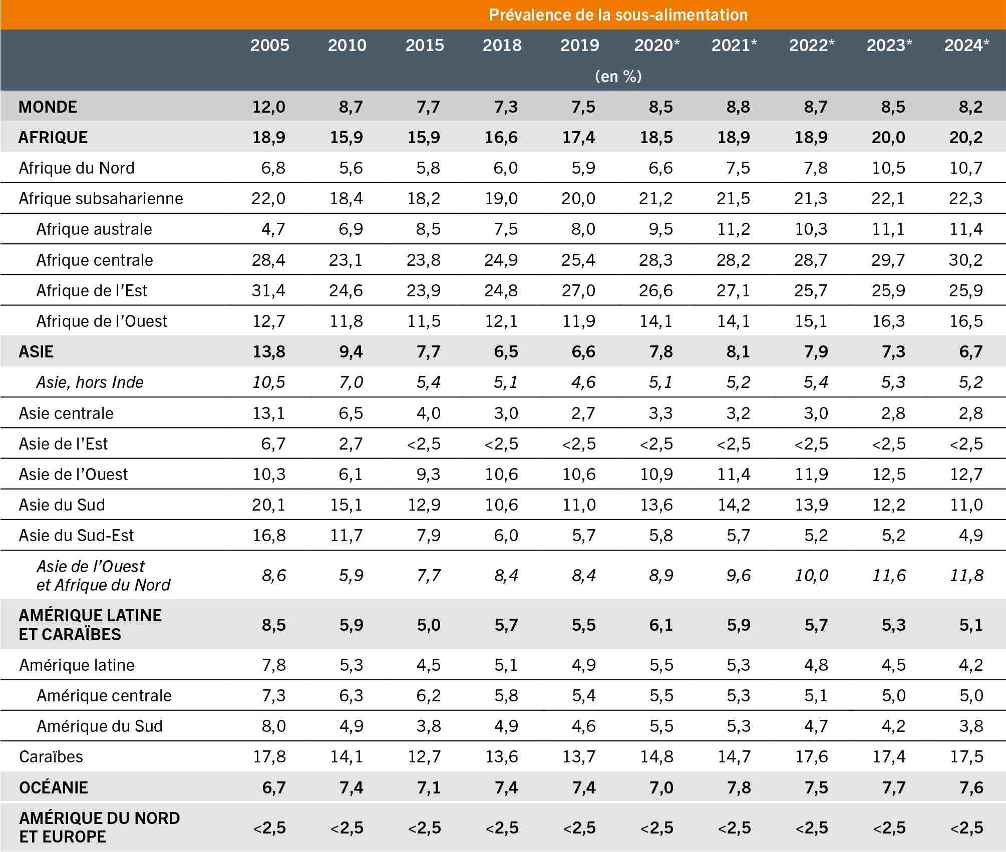 TABLEAU 2.1PRÉVALENCE DE LA SOUS-ALIMENTATION (2005-2024)