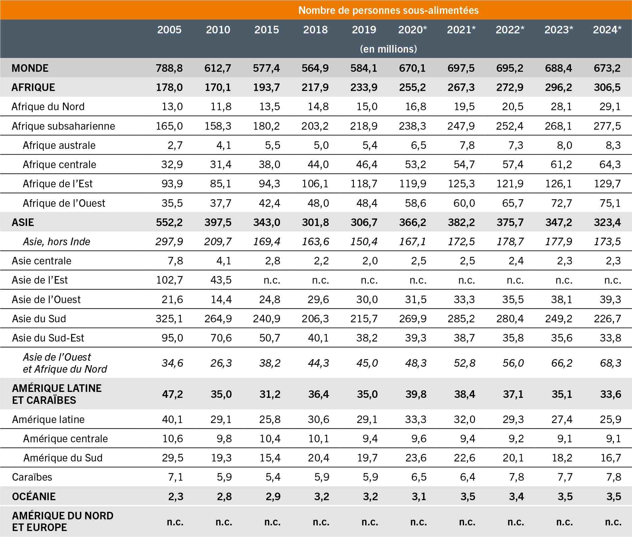 TABLEAU 2.2NOMBRE DE PERSONNES SOUS-ALIMENTÉES (2005-2024)