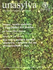 Los artículos y fotografías en los que no conste expresamente la palabra " copyright " pueden reproducirse mencionando su origen de la manera siguiente: " De Unasylva, revista de silvicultura e industrias forestales de la FAO ", y deben enviarse al redactor dos ejemplares de la publicación en que aparezcan. Los artículos firmados que se reproduzcan deberán mencionar el nombre del autor. Las cartas al redactor serán acogidas con agrado, pero deberán ser firmadas (caso de solicitarlo se publicará el nombre del remitente). Las denominaciones empleadas en esta publicación y la forma en que aparecen presentados los datos que contiene no implican, de parte de la Organización de las Naciones Unidas pare la Agricultura y la Alimentación, juicio alguno sobre la condición jurídica de países, territorios, ciudades o zonas, o de sus autoridades, ni respecto de la delimitación de sus fronteras o limites. Los artículos firmados expresan las opiniones de sus autores. Unasylva es una publicación trimestral. El precio de cada número es de 1 650 liras italianas. Suscripción: un año: 5.200 liras; dos años: 9.100 liras; tres años: 13.000 liras. Las suscripciones en otras monedas locales pueden pagarse a los agentes de venta de la FAO, que aparecen en la lista del interior de la contratapa.