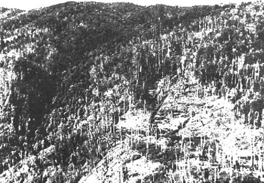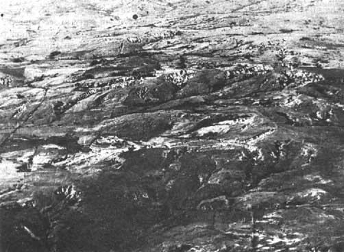 Hace algunos años el Oficial Forestal Regional de la FAO en América Latina utilizó este grupo de fotografías para ilustrar a los ministros y otros funcionarios gubernamentales interesados en problemas de aprovechamiento de sierras lo que sucede cuando en el medio ambiente hay presiones demográficas, incendios y erosiones. En la Figura 1 puede verse un bosque natural y no ordenado, con el retraimiento de su lindero. En la Figura 2 se reproduce una visión más amplia del mismo bosque, pudiéndose apreciar la forma en la que se propaga la erosión por las laderas escarpadas. La Figura 3 reproduce el mismo lugar cinco años después. En la Figura 4 puede apreciarse una zona adyacente, con suelo similar; cabía predecir un proceso, que ya ha comenzado, de transformación en desierto.