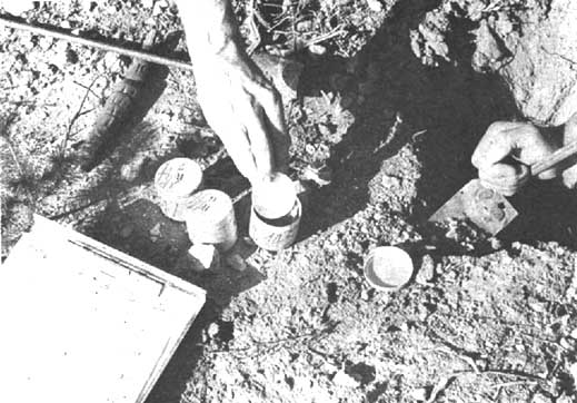 Los discos de papel filtro se colocan en las latas junto con las muestras de suelo