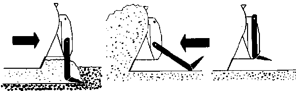 (a) Situar la cuchilla en posición tiltdozer.(b) Excavar un hoyo delante del árbol para seccionar las raíces del lado opuesto a la caída.
