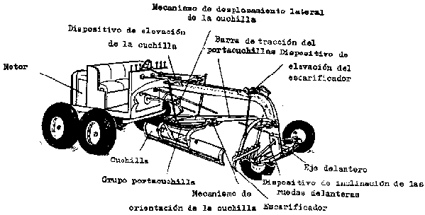 Tractor nivelador. Cuando la importancia de las obras lo justifique, la máquina básica indispensable será el tractor nivelador. Este tractor irá equipado con una cuchilla de empuje angular y un malacate forestal posterior. Dadas las condiciones de trabajo en el bosque, el tractor se habrá dotado de los órganos de protección necesarios: cabina reforzada, placa de protección del radiador y corazas.