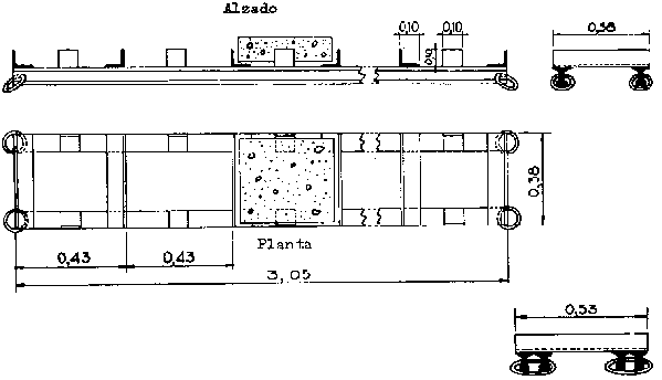FIGURA 46. - Diagrama de una emparejadora diseñada para que emplee como base raíles de ferrocarril reforzados con bloques de cemento colocados entre las vías.