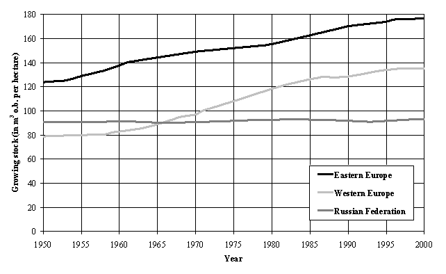 Figure 5 Trends in growing stock in selected European countries from 1950 to 2000