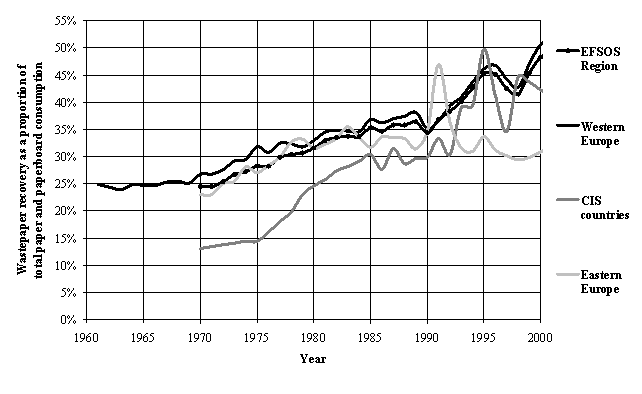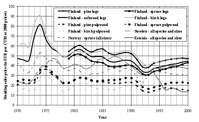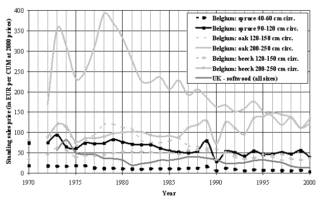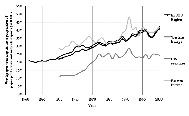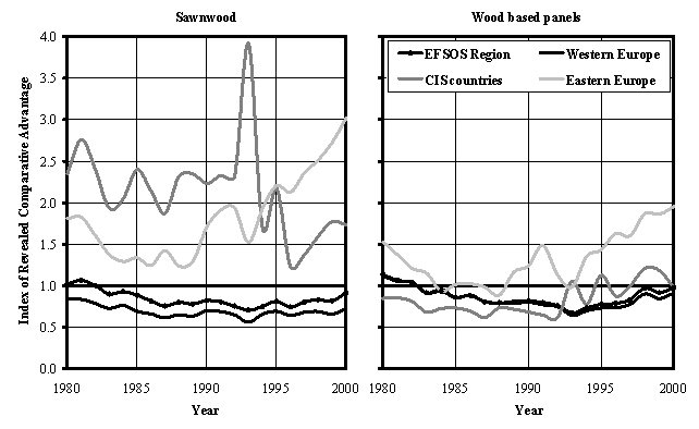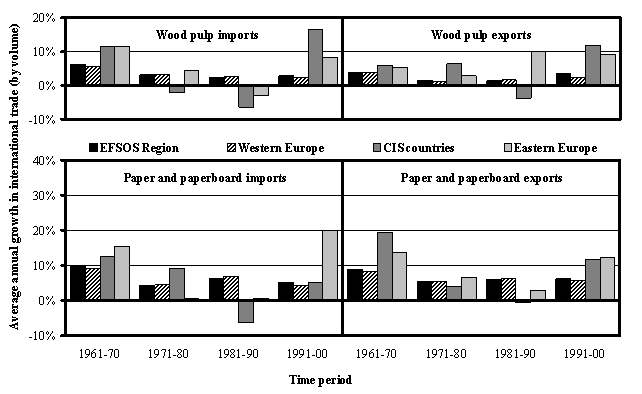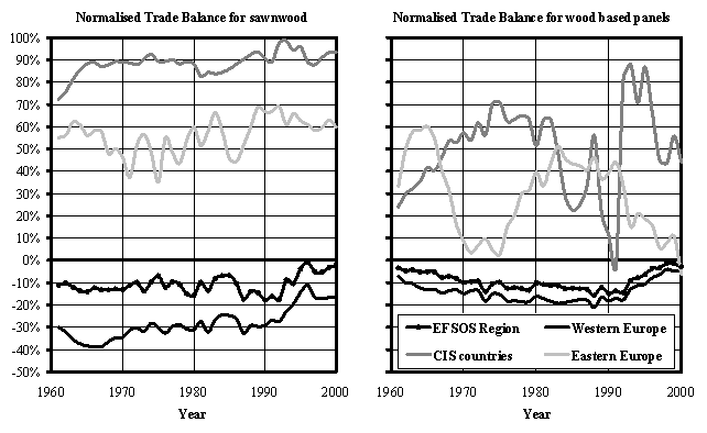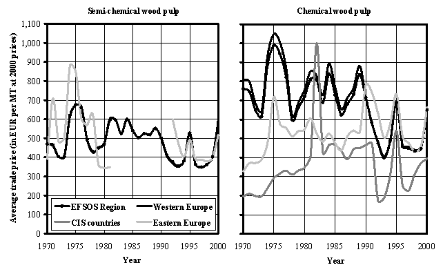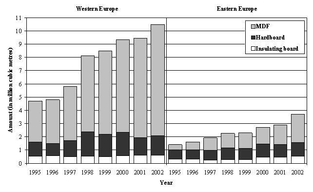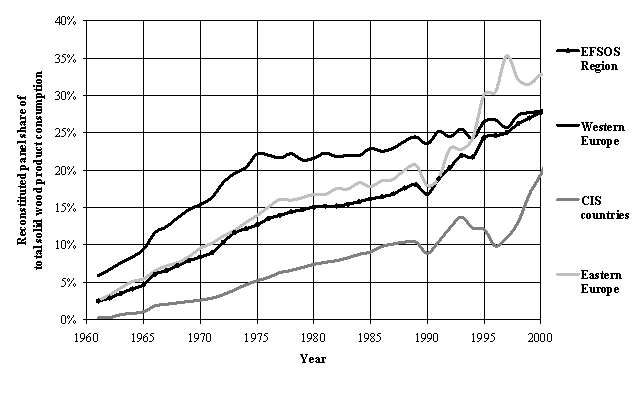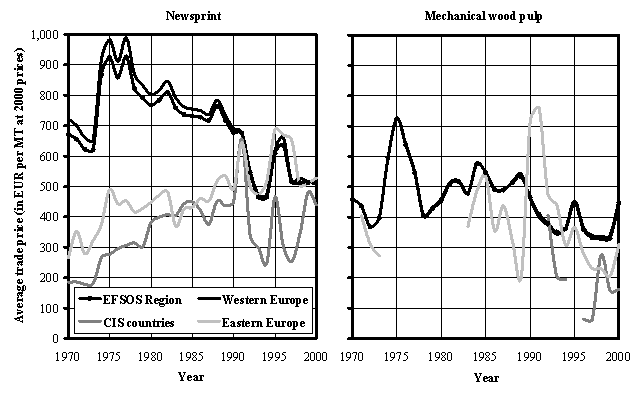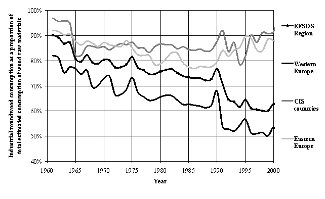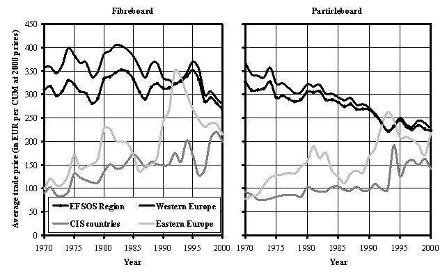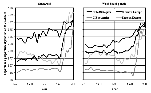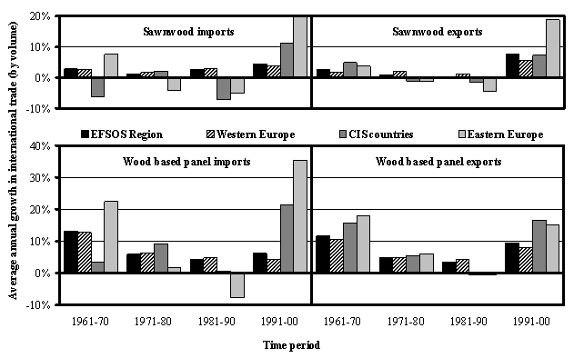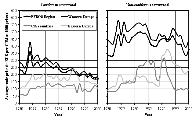 The dramatic changes in the latter two sub-regions make it difficult to present useful information about historical growth rates in the markets for coniferous sawnwood in Europe. However, the trends in Western Europe have been more stable and it is possible to give an indication of recent growth trends in the other two sub-regions.