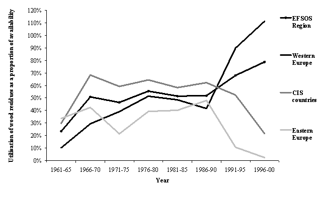 7 To avoid confusion between the availability of residues and the production of residues, the word “utilisation” is used here rather than production. This means the use of wood residues either for domestic consumption or export.