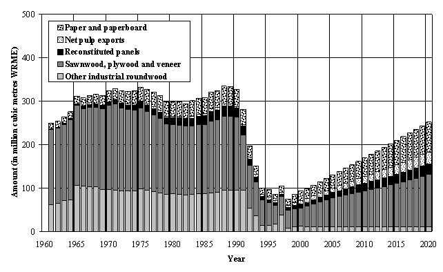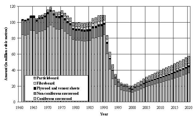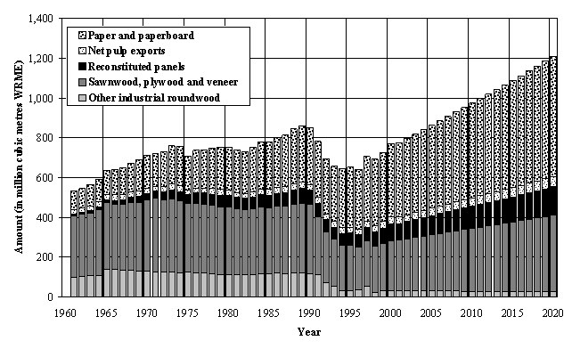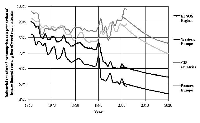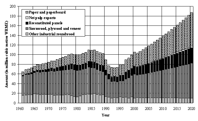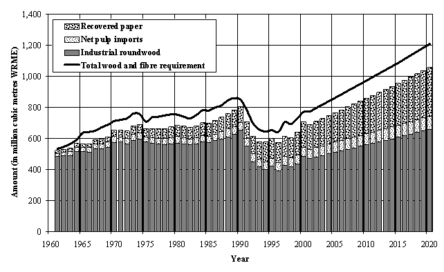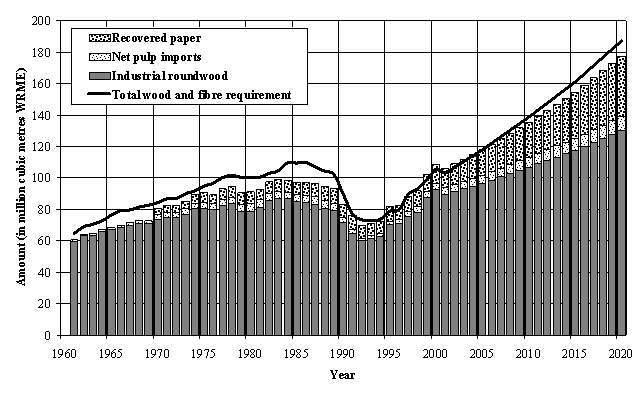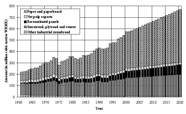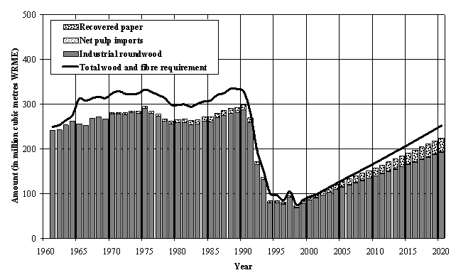 21 For other industrial roundwood, projections of future production were based simply on an extrapolation of historical trends. In most countries, this resulted in a slight decline in production over the next two decades.