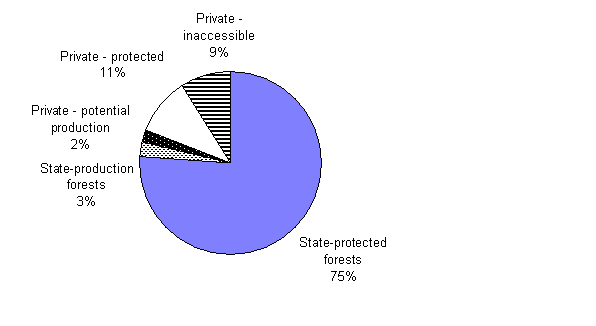 As shown, the Department of Conservation holds more than 4.9 million hectares of natural forest in National parks, scenic reserves, forest parks and other protection areas. A further 650,000 hectares is privately owned protected forest. Discounting inaccessible areas there is effectively less than 300,000 hectares of natural forest available for wood production. Under the 1993 amendments to the Forests Act 1949, these areas can only be logged if they are subject to a Government-approved sustainable management plan or unless they are already subject to the West Coast Forest Accord, covered by the Landless Maoris Act 1908, or planted indigenous forest.