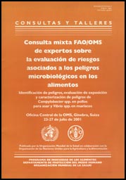 WHOS/SDE/PHE/FOS/01.4 CONSULTAS Y TALLERES Consulta mixta FAO/OMS de expertos sobre la evaluación de riesgos asociados a los peligros microbiológicos en los alimentos Identificación de peligros, evaluación de exposición y caracterización de peligros de Campylobacter spp. en pollos para asar y Vibrio spp. en mariscos Oficina Central de la OMS, Ginebra, Suiza |