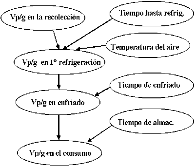 El modelo tiene cuatro módulos (Figs. 6.8 - 6.11) que adaptan la secuencia total desde la recolección y la post recolección y termina con el consumo en el hogar o en el área despacho de alimentos.